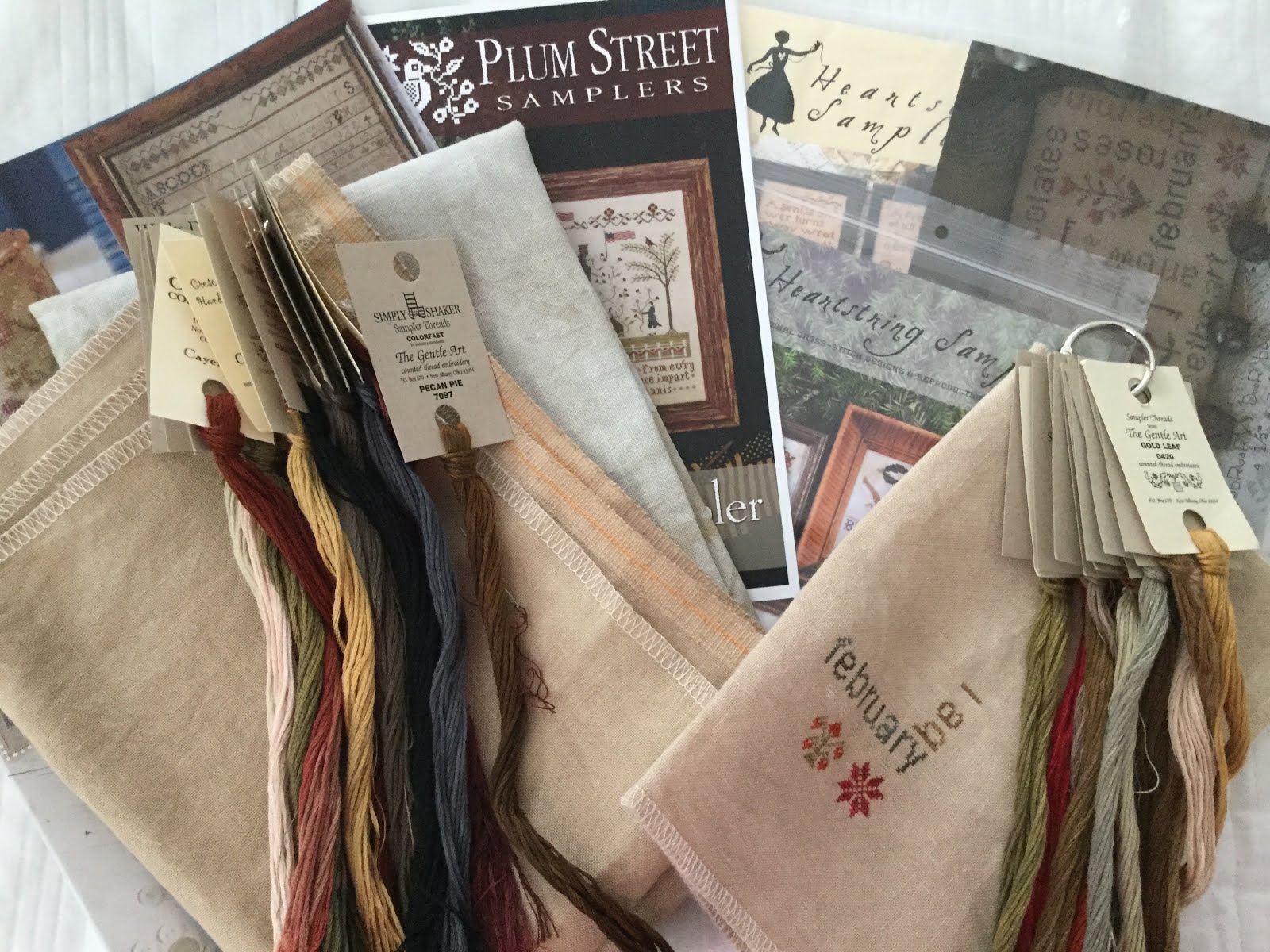 February Word Play by With Thy Needle & Thread - 40 ct. Vintage Pecan Butter by Lakeside Linens and GAST (1 over 2).