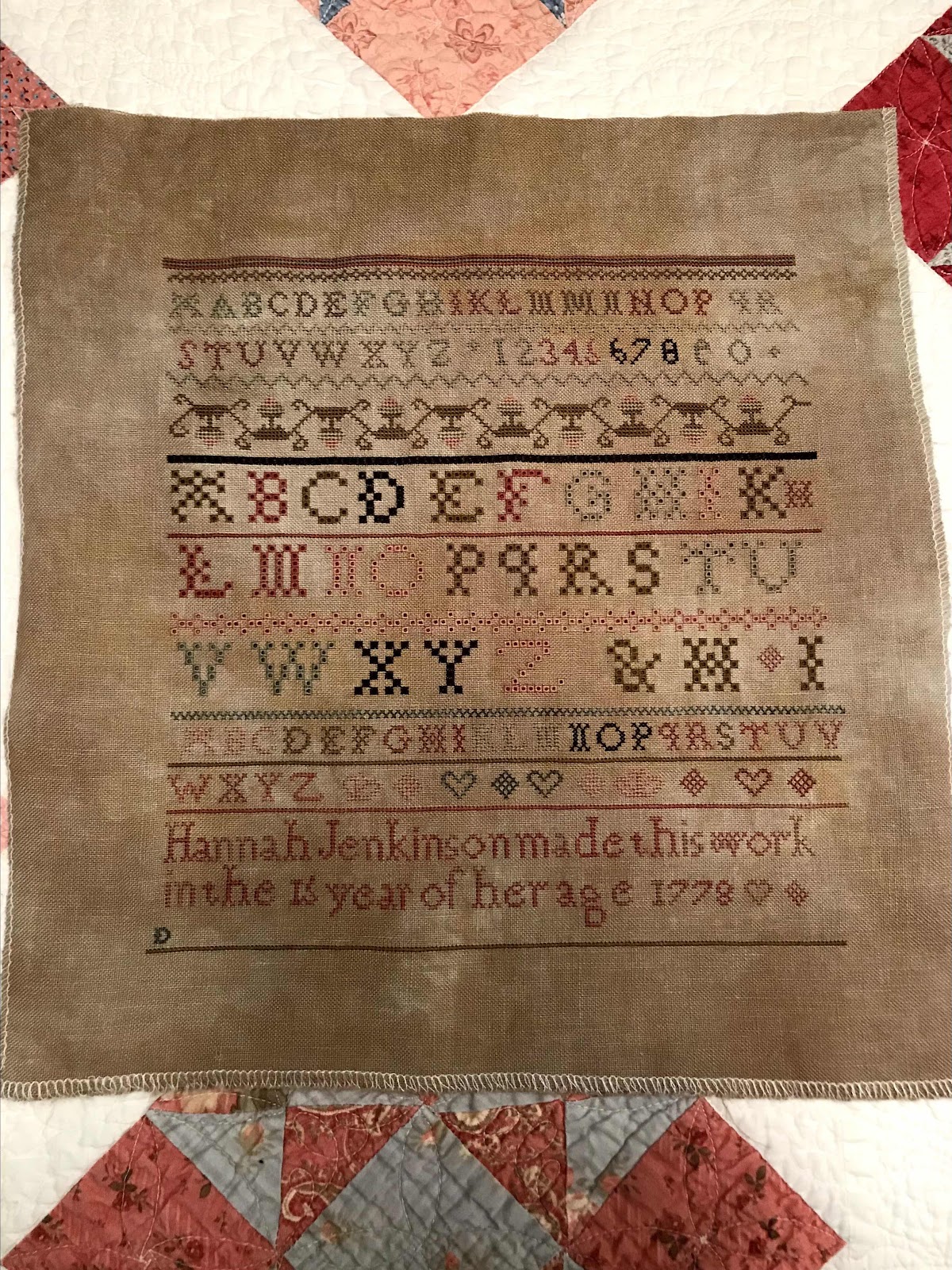 - Margaret White 1841 by Sassafras Samplers - 40 ct. Vintage Pecan Butter by Lakeside Linens and DMC threads.