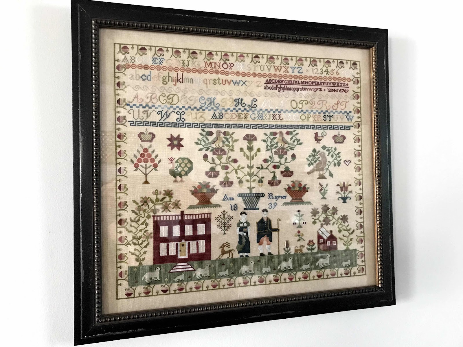 The Stitch and Frame Shop - 40 ct. Antique Lace by Seraphim, 40 ct. Vintage Meadow Rue by Lakeside Linens, Little Deeds Sampler by The Scarlett House and Classic Colorworks threads for Ann Gott.