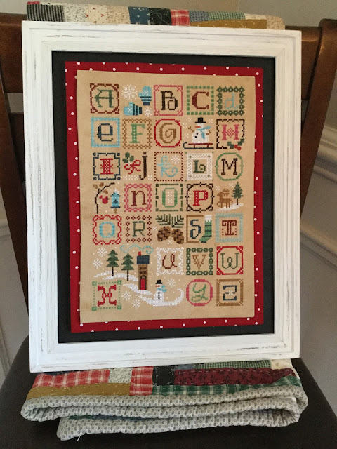 Lizzie Kate Winter Alphabet - 28 ct. Tea/Coffee-Dyed Monaco using the called for cotton threads (2 over 2). This finish was inspired by Priscilla.